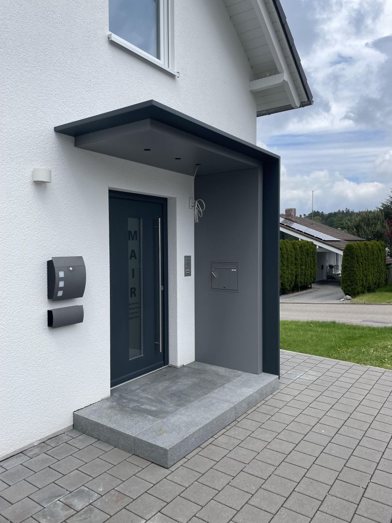 Unsere Vordächer werden individuell nach Ihren Vorstellungen gestaltet. Schützen Sie Ihren Eingangsbereich, Ihre Haustür oder Ihre Terrasse vor Sonne und schlechtem Wetter mit unseren hochwertigen Aluminiumdächer.